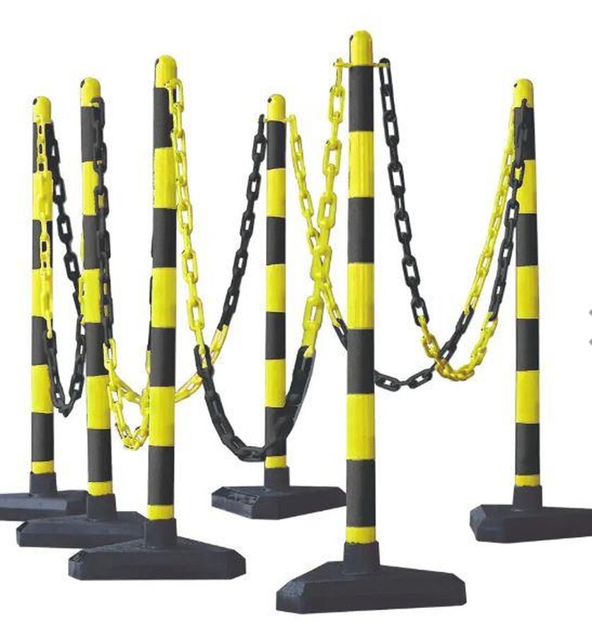 Paal voor verkeersbord met voet zwart/geel.
